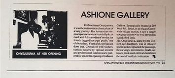 Ashione Gallery was opened in 1992 as a result of the paucity in quality in African works of art available to the regular person. The Gallery quickly became a leader in authentic African art and carries only museum quality artifacts.
